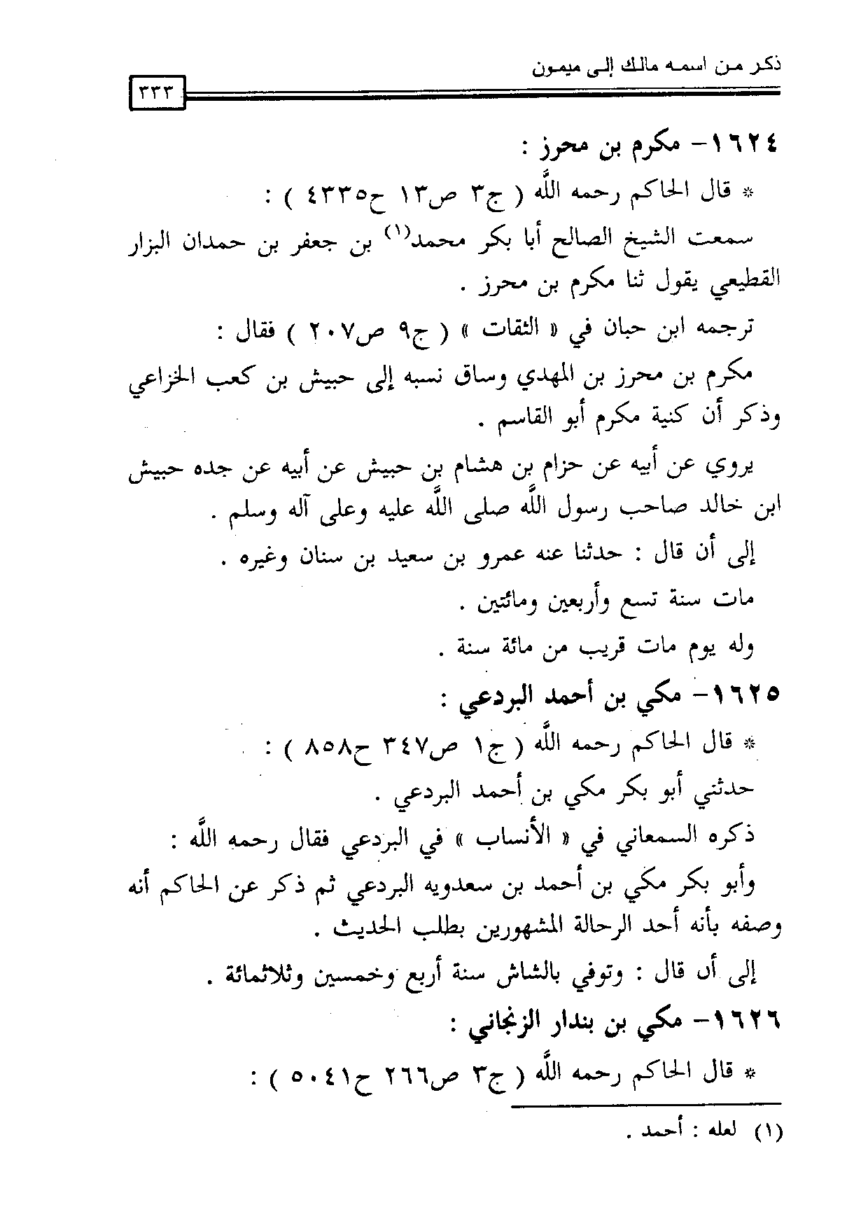 وأبو بكر مكي بن أحمد بن سعدويه البردعي، ثم ذكر عن الحاكم أنه وصفه بأنه أحد الرحالة المشهورين بطلب الحديث.