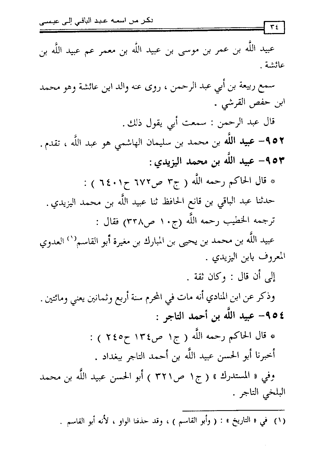 952 - عبيد الله بن محمد بن سليمان الهاشمي هو عبد الله، تقدم.