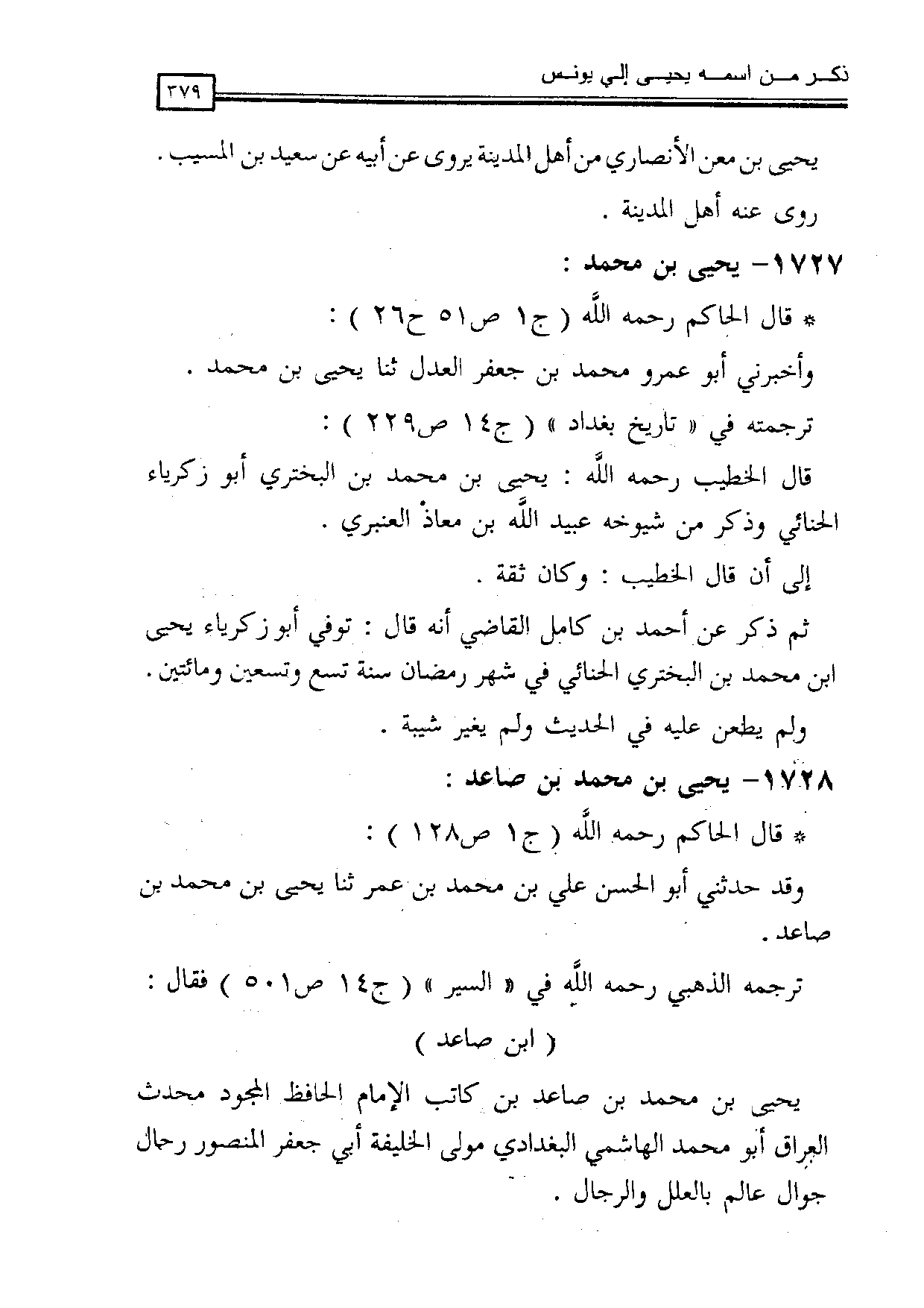 يحيى بن محمد بن صاعد بن كاتب الإمام، الحافظ، المجود محدث العراق أبو محمد الهاشمي البغدادي مولى الخليفة أبي جعفر المنصور رحال جوال عالم بالعلل والرجال.
