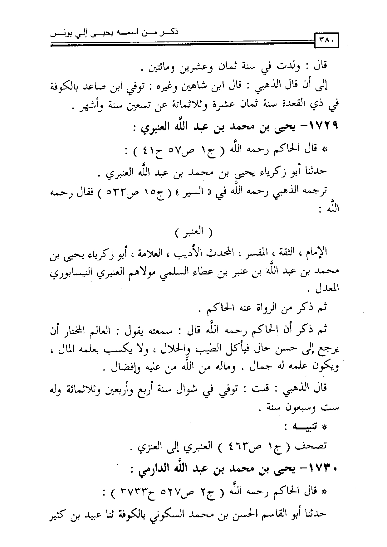 1729 - يحيى بن محمد بن عبد الله العنبري: