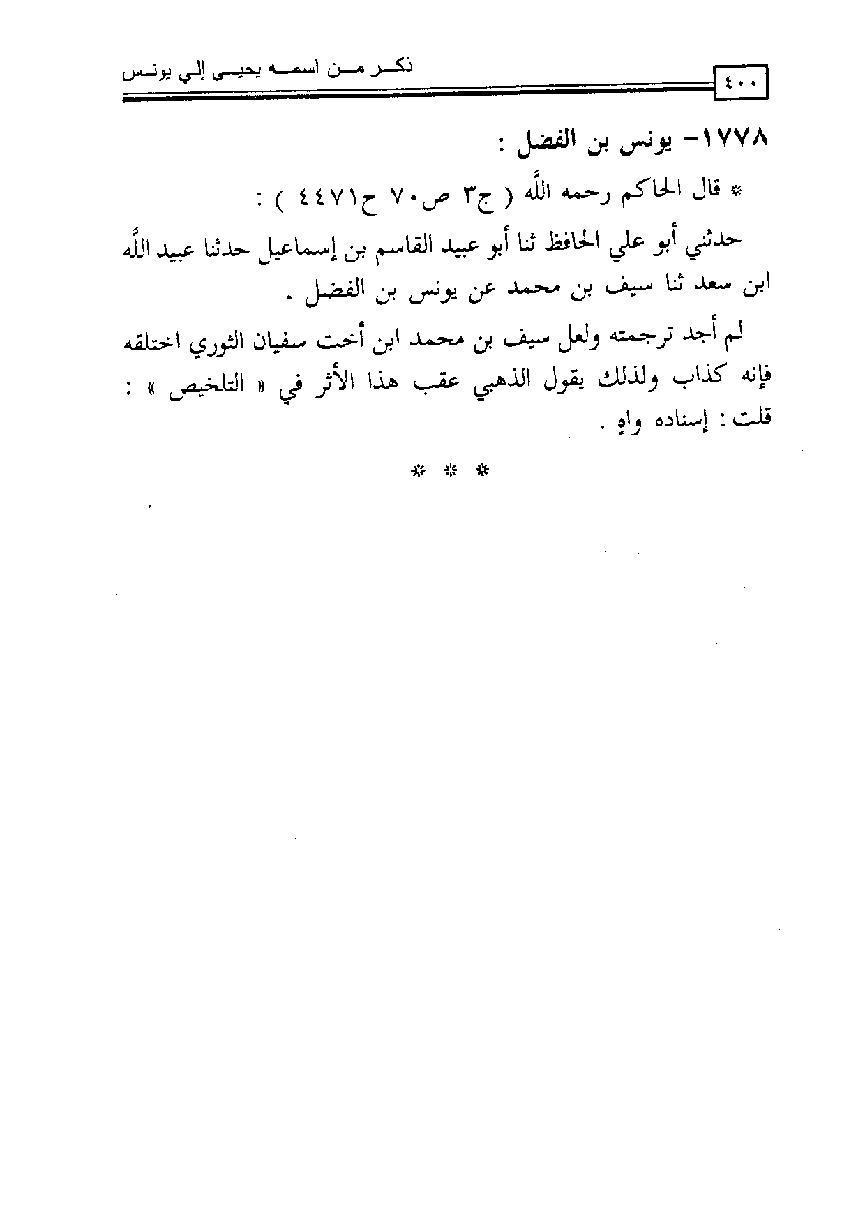 حدثني أبو علي الحافظ، ثنا أبو عبيد القاسم بن إسماعيل حدثنا عبيد الله بن سعد، ثنا سيف بن محمد عن يونس بن الفضل.