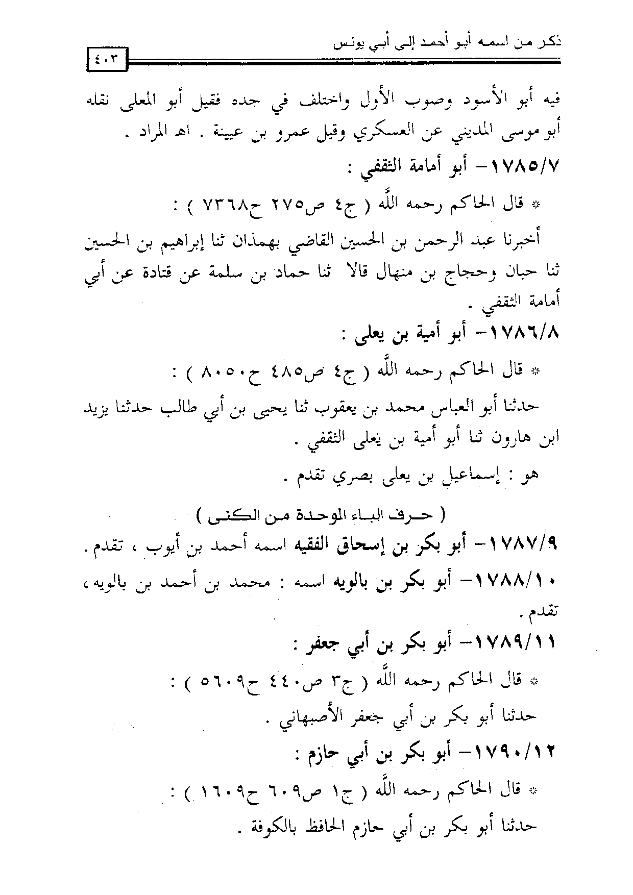 (حرف الباء الموحدة من الكنى).