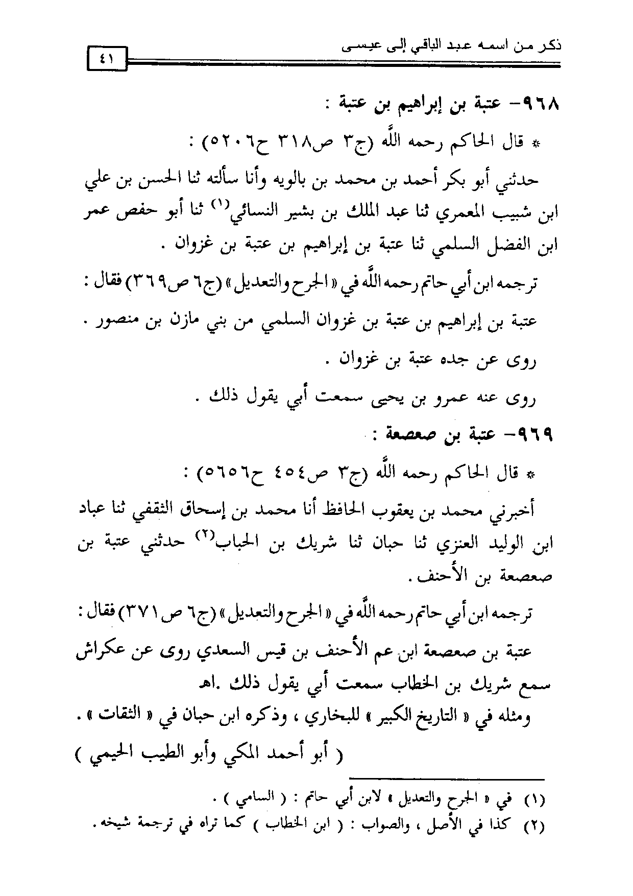 ترجمه ابن أبي حاتم رحمه الله في الجرح والتعديل (ج 6 ص 369) فقال: عتبة بن إبراهيم بن عتبة بن غزوان السلمي من بني مازن بن منصور. روى عن جده عتبة بن غزوان.