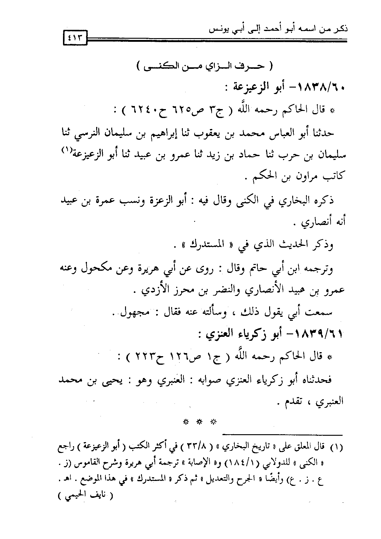 ترجمه البخاري رحمه الله في «التاريخ الكبير» في الكنى فقال: