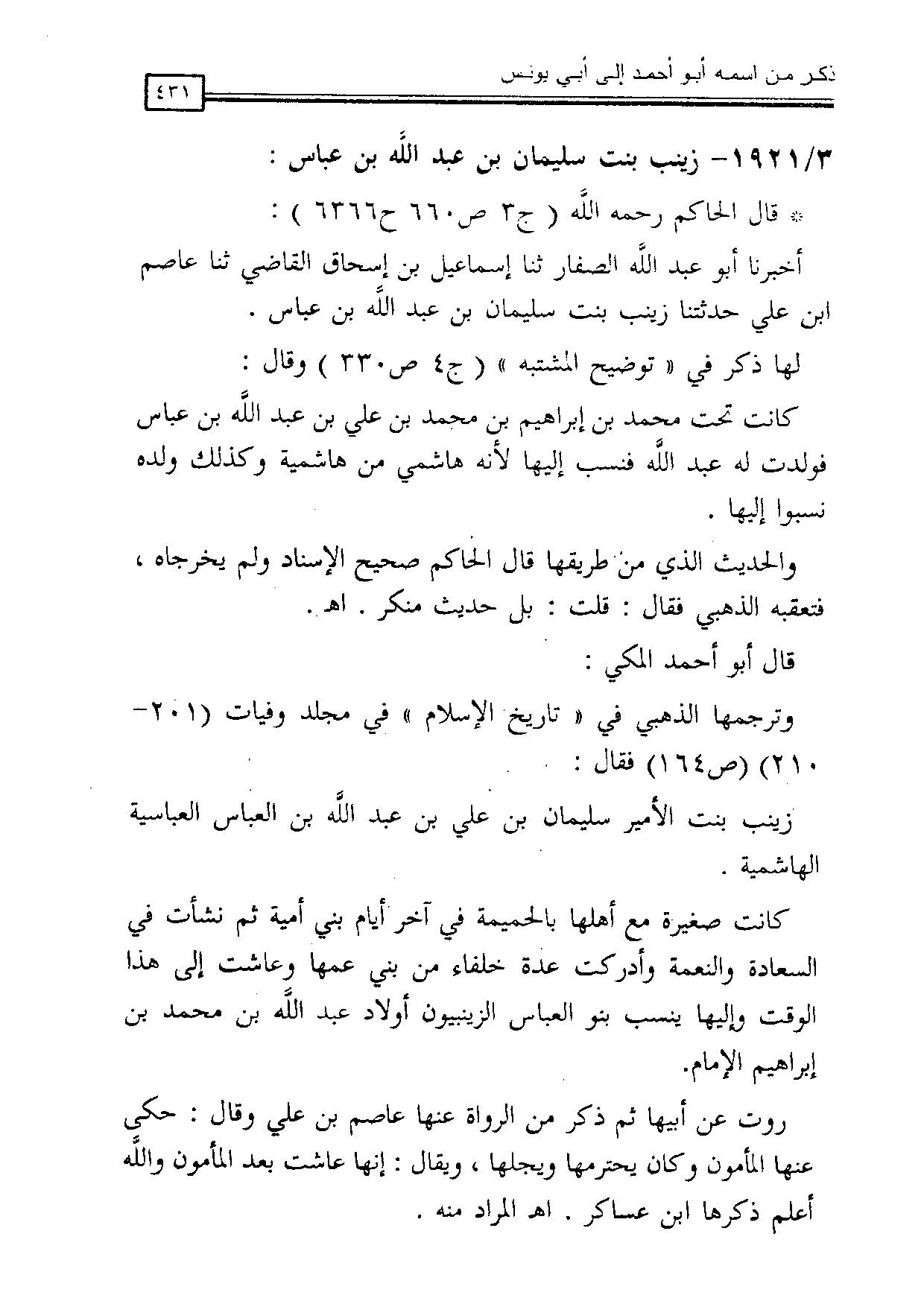3/ 1921 – زينب بنت سليمان بن عبد الله بن عباس: