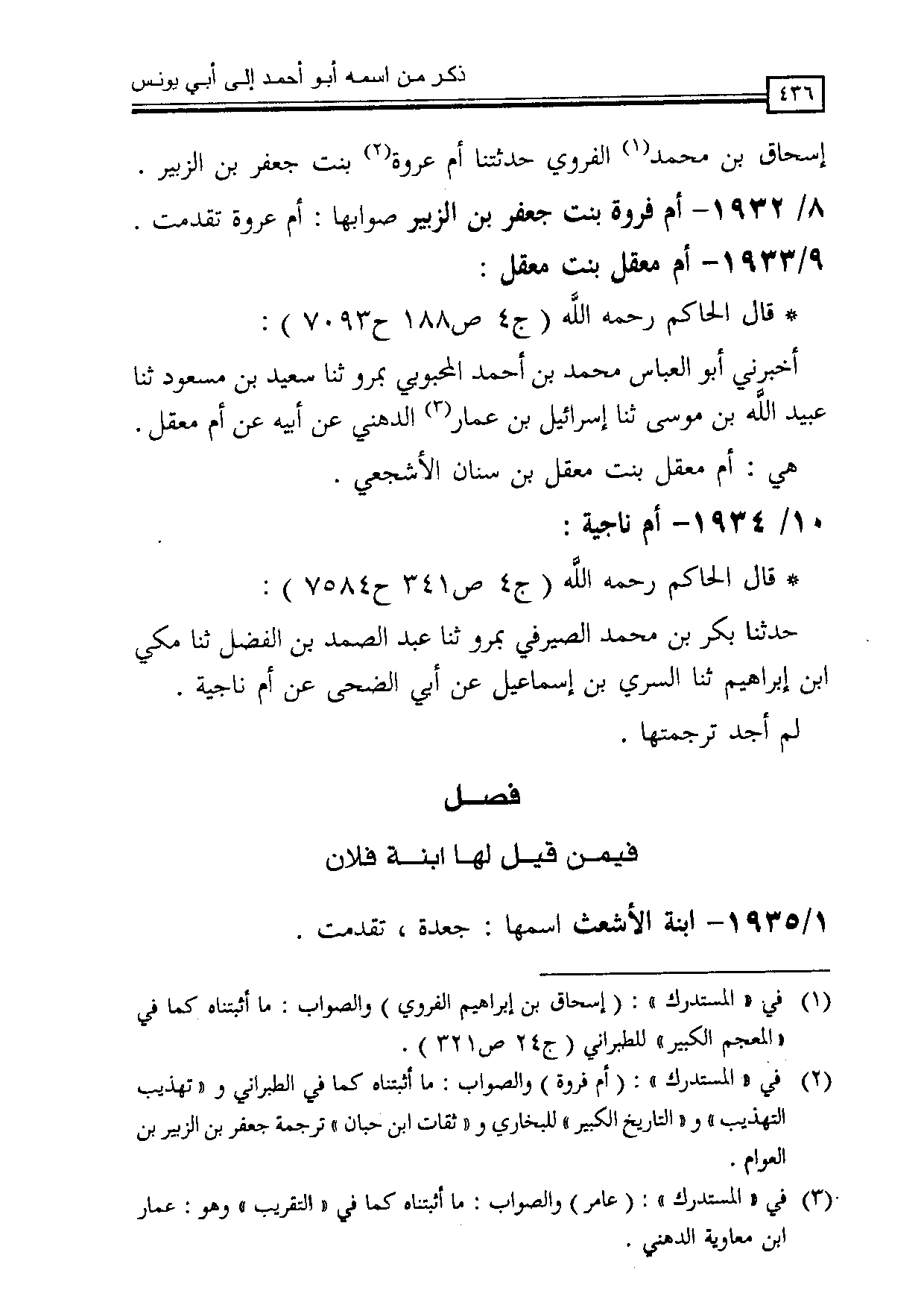 8/ 1932 – أم فروة بنت جعفر بن الزبير صوابها أم عروة تقدمت.