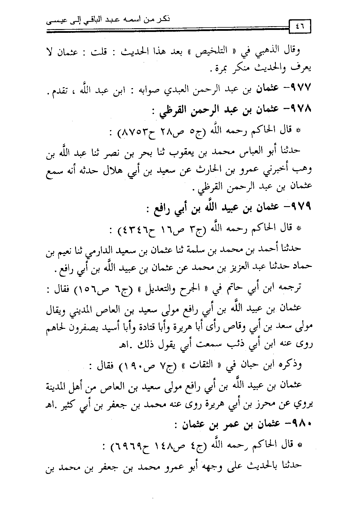 977 - عثمان بن عبد الرحمن العبدي صوابه: ابن عبد الله، تقدم.