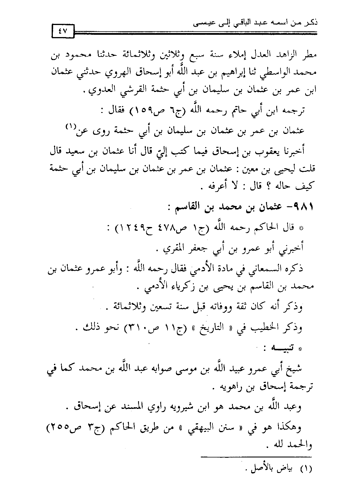 981 - عثمان بن محمد بن القاسم:
