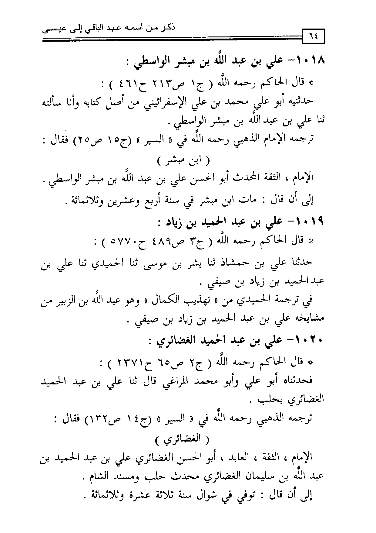 1018 - علي بن عبد الله بن مبشر الواسطي: