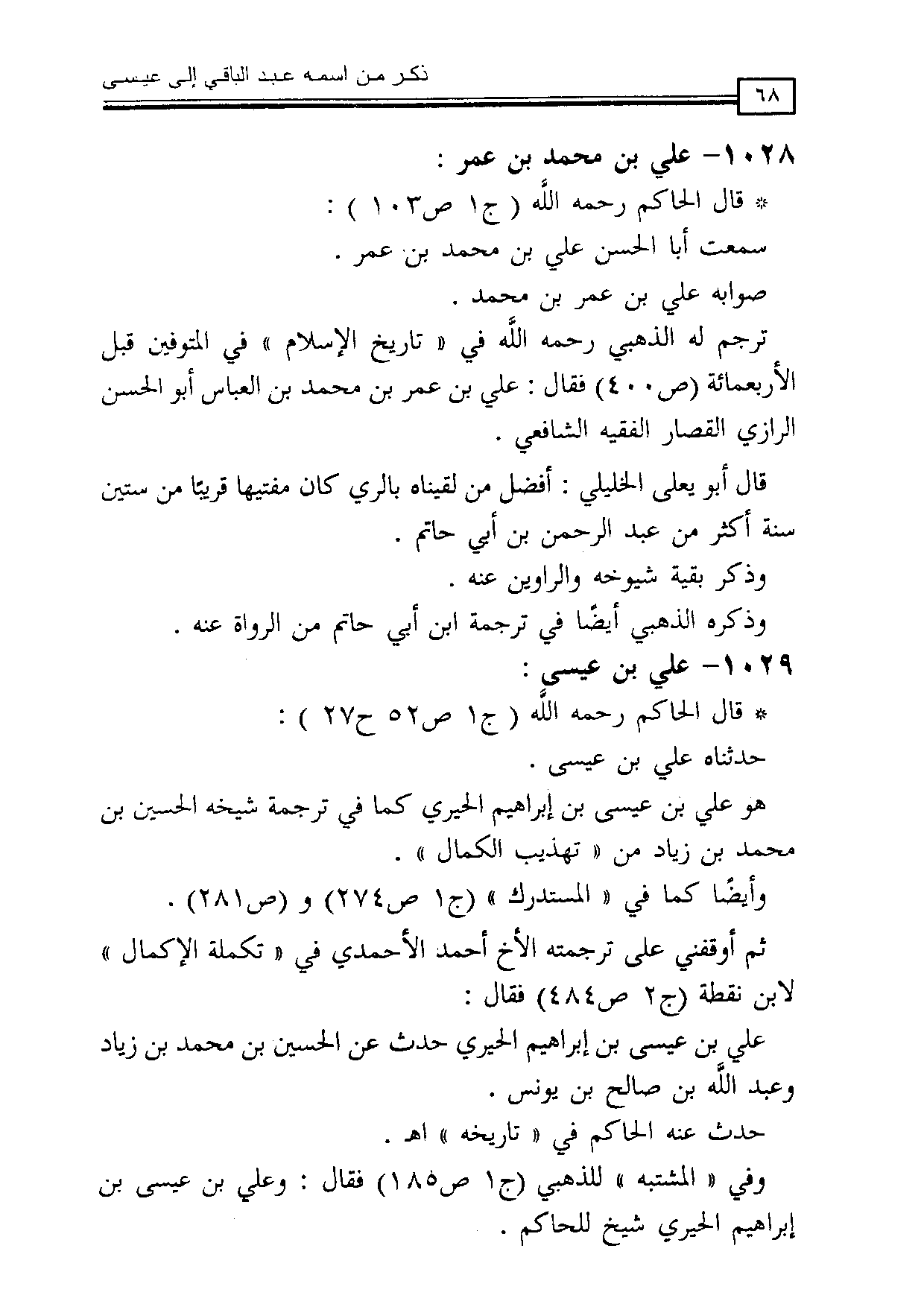 وفي المشتبه للذهبي (ج 1 ص 185) فقال: وعلي بن عيسى بن إبراهيم الحيري شيخ للحاكم.