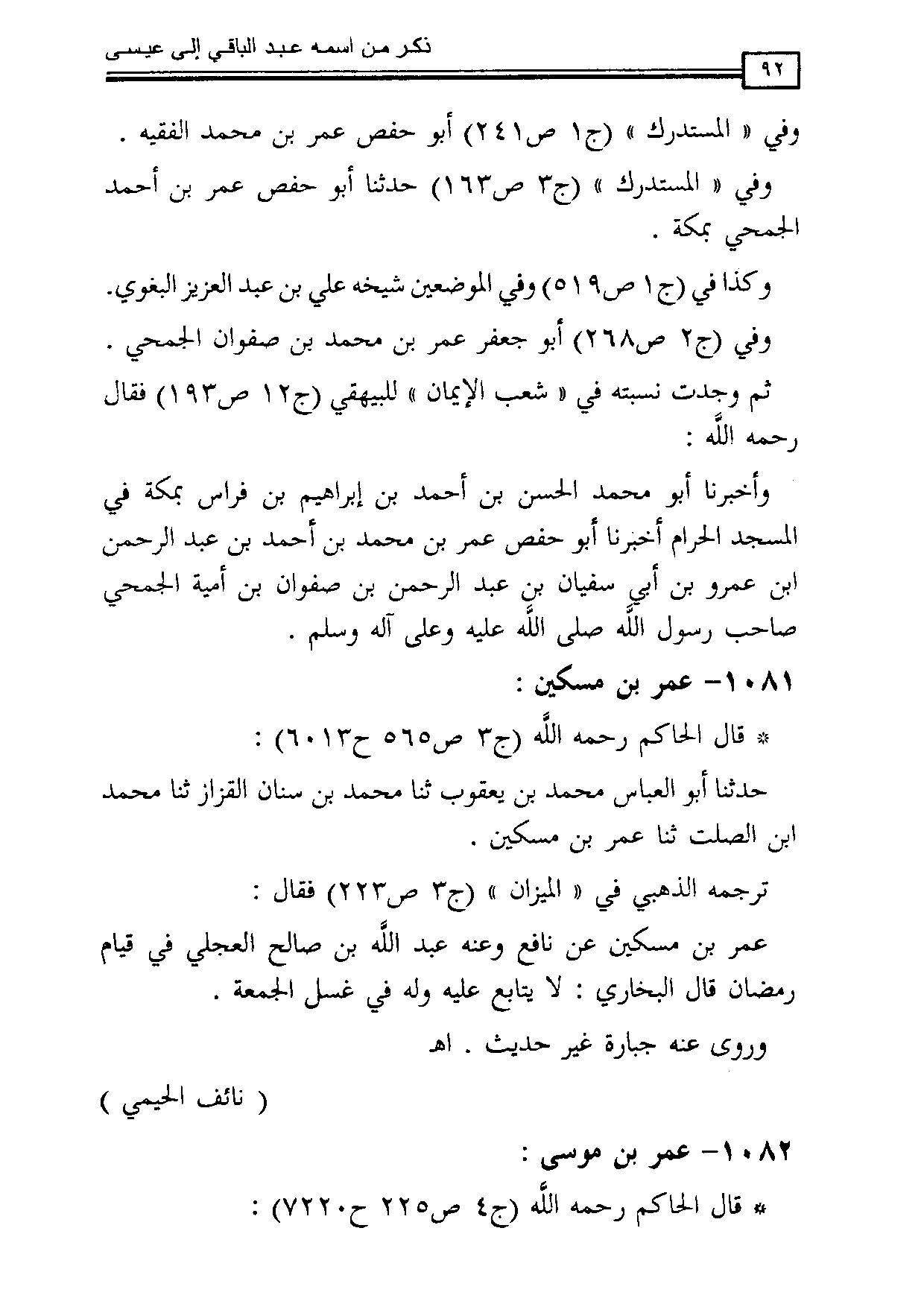 وفي «المستدرك» (ج 1 ص 241) أبو حفص عمر بن محمد الفقيه. وفي «المستدرك» (ج 3 ص 163):