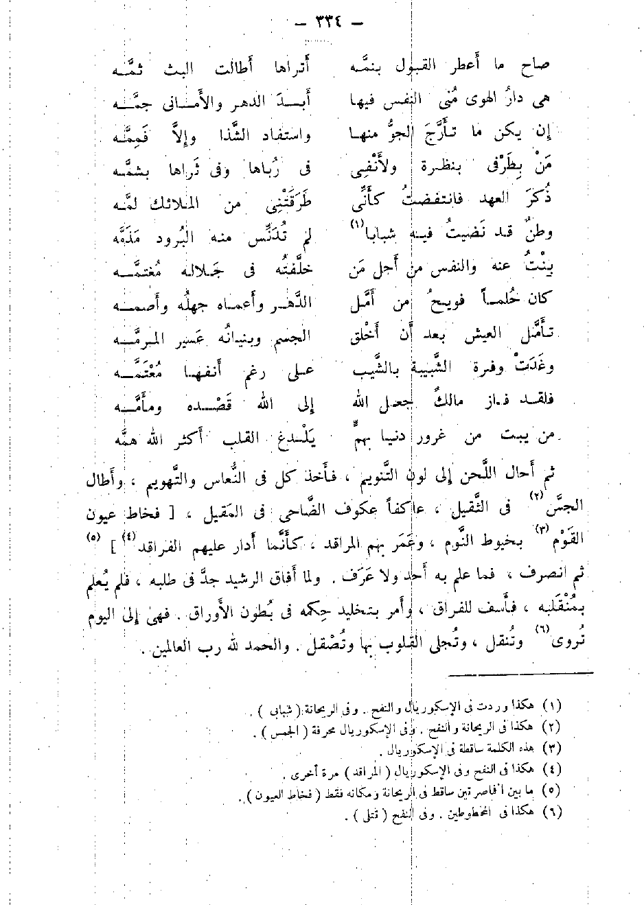 ثمَّ أحَال اللّحن إِلَى لون التنويم، فَأخذ كل فِي النعاس والتهويم، وَأطَال الجس فِي الثقيل، عاكفا عكوف الضاحي فِي المقيل، [فخاط عُيُون الْقَوْم بخيوط النّوم، وَعمر بهم المراقد، كَأَنَّمَا أدَار عَلَيْهِم الفراقد] ثمَّ انْصَرف، فَمَا علم بِهِ أحد وَلَا عرف. وَلما أَفَاق الرشيد جد فِي طلبه، فَلم يعلم بمنقلبه، فأسف للفراق، وَأمر بتخليد حكمه فِي بطُون الأوراق، فَهِيَ إِلَى الْيَوْم تروى وتنقل، وتجلى الْقُلُوب بهَا وتصقل. وَالْحَمْد لله رب الْعَالمين.