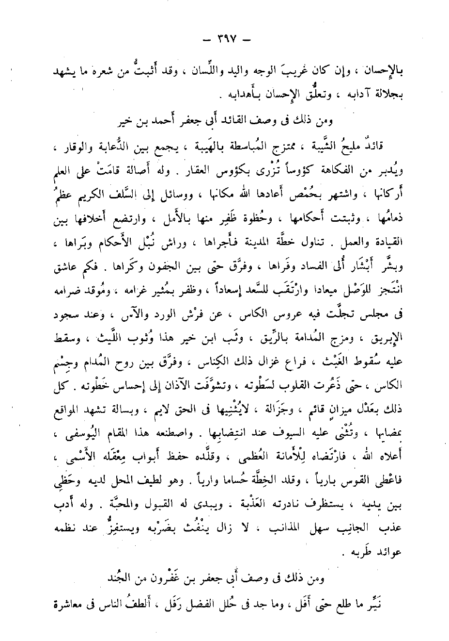وَمن ذَلِك فِي وصف الْقَائِد أبي جَعْفَر أَحْمد بن خير
