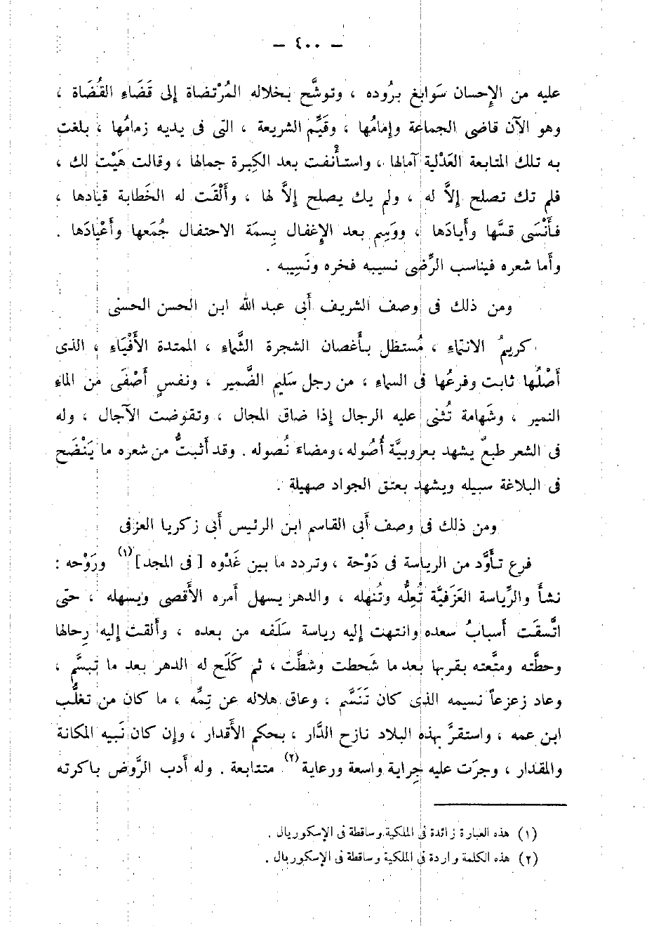 وَمن ذَلِك فِي وصف الشريف أبي عبد الله ابْن الْحسن الحسني