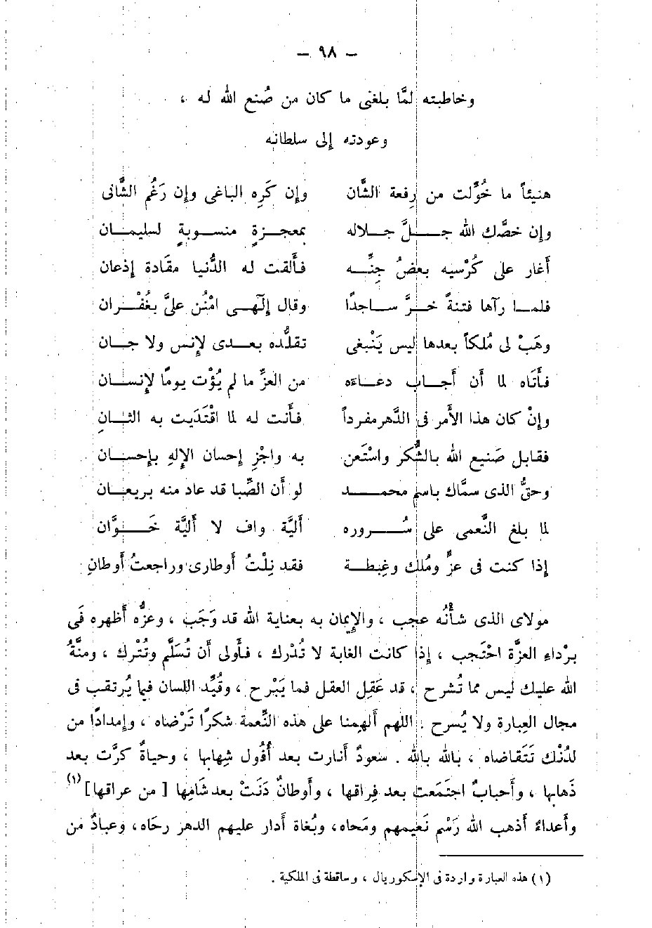 وخاطبته لما بَلغنِي مَا كَانَ من صنع الله لَهُ، وعودته إِلَى سُلْطَانه