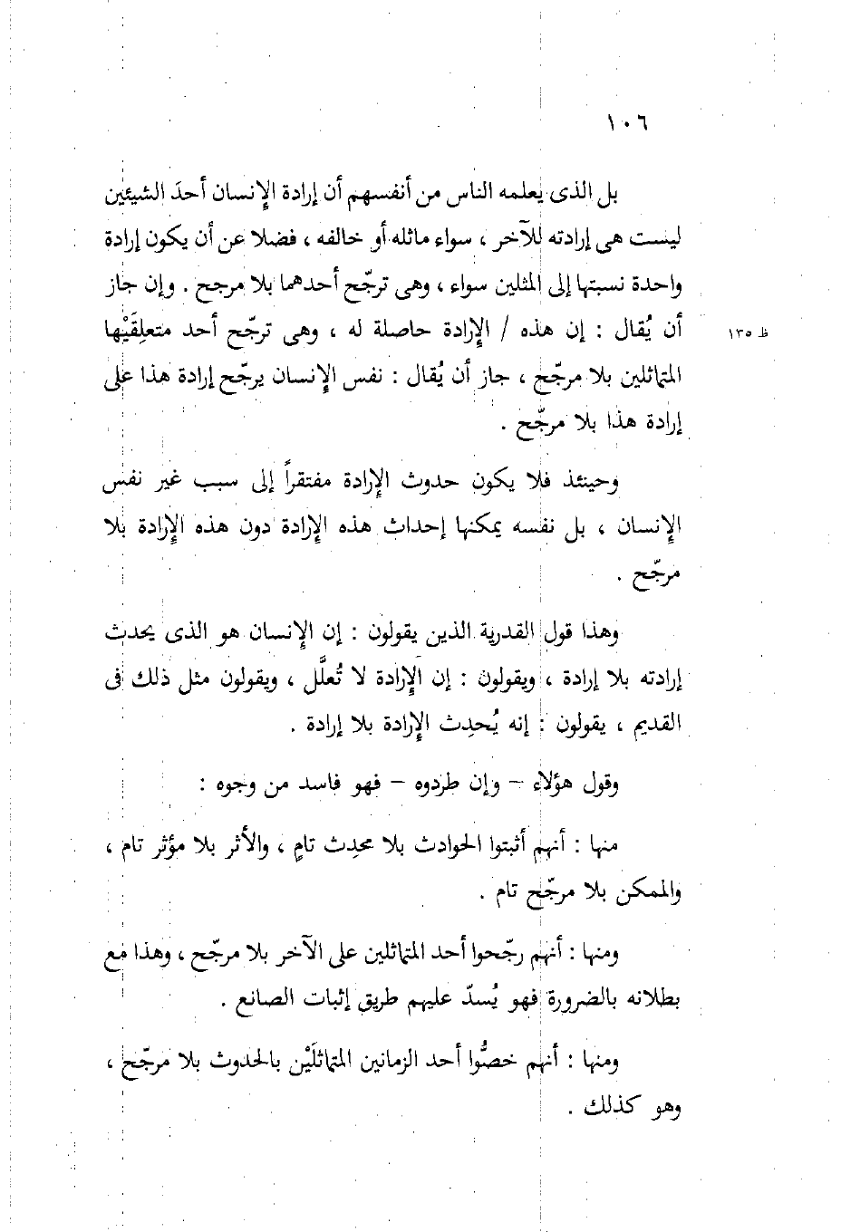 بل الذي يعلمه الناس من أنفسهم أن إرادة الإنسان أحد الشيئين ليست هي إرادته للآخر سواء ماثله أو خالفه فضلا عن أن يكون إرادة واحدة نسبتها إلى المثلين سواء وهي ترجح أحدهما بلا مرجح وإن جاز أن يقال إن هذه الإرادة حاصلة له وهي ترجح أحد متعلقيها المتماثلين بلا مرجح جاز أن يقال نفس الإنسان يرجح إرادة هذا على إرادة هذا بلا مرجح.