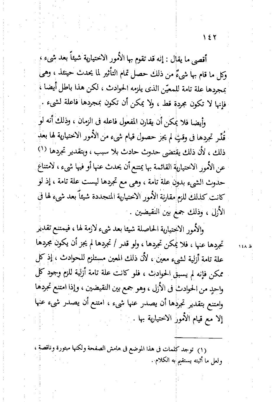 وأيضا فلا يمكن أن يقارن المفعول فاعله في الزمان وذلك أنه لو قدر تجردها في وقت لم يجز حصول قيام شيء من الأمور الاختيارية لها بعد ذلك لأن ذلك يقتضي حدوث حادث بلا سبب وبتقدير تجردها عن الأمور الاختيارية القائمة بها يمتنع أن يحدث عنها أو فيها شيء لامتناع حدوث الشيء بدون علة تامة وهي مع تجردها ليست علة تامة إذ لو كانت كذلك للزم مقارنة الأمور الاختيارية المتجددة شيئا بعد شيء لها في الأزل وذلك جمع بين النقيضين.