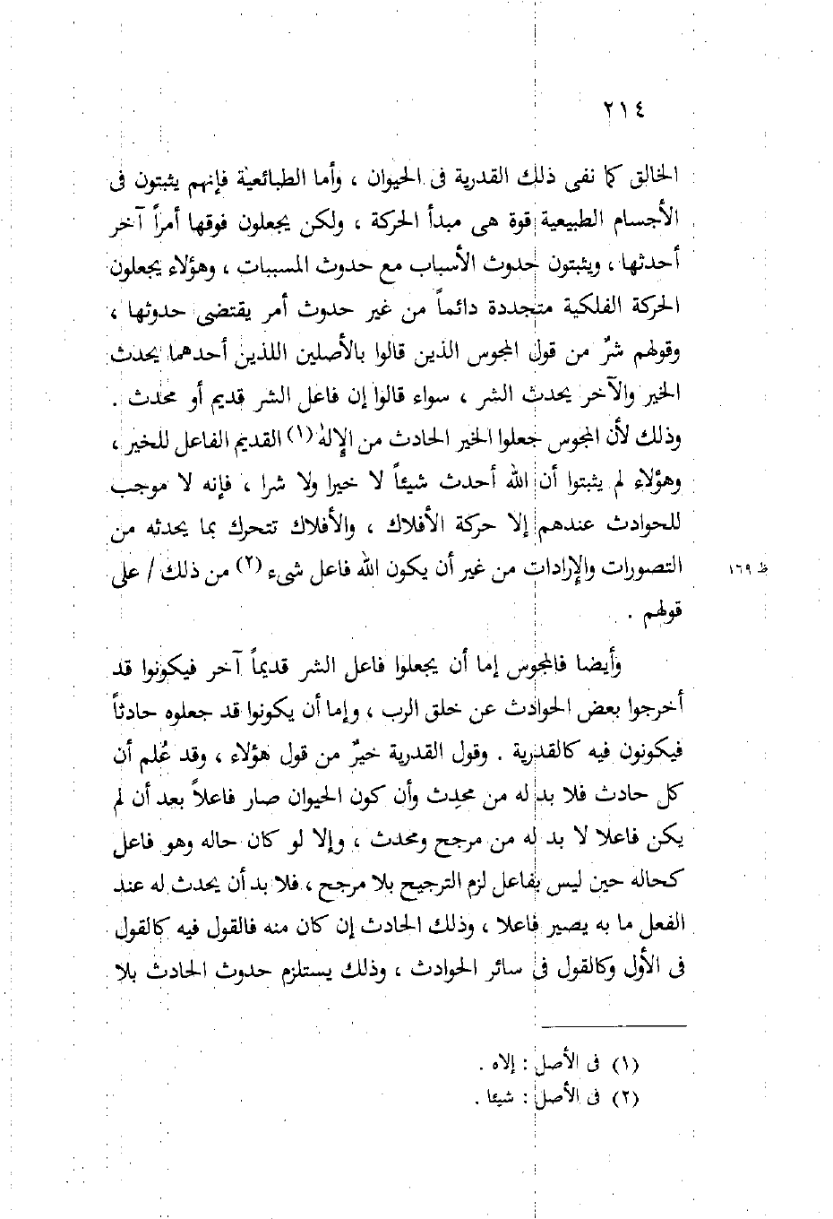 وأيضا فالمجوس إما أن يجعلوا فاعل الشر قديما آخر فيكونوا قد أخرجوا بعض الحوادث عن خلق الرب وإما أن يكونوا قد جعلوه حادثا فيكونون فيه كالقدرية وقول القدرية خير من قول هؤلاء وقد علم أن كل حادث فلا بد له من محدث وأن كون الحيوان صار فاعلا بعد أن لم يكن فاعلا لا بد له من مرجح ومحدث وإلا لو كان حاله وهو فاعل كحاله حين ليس بفاعل لزم الترجيح بلا مرجح فلا بد أن يحدث له عند الفعل ما به يصير فاعلا وذلك الحادث إن كان منه فالقول فيه كالقول في الأول وكالقول في سائر الحوادث وذلك يستلزم حدوث الحادث بلا