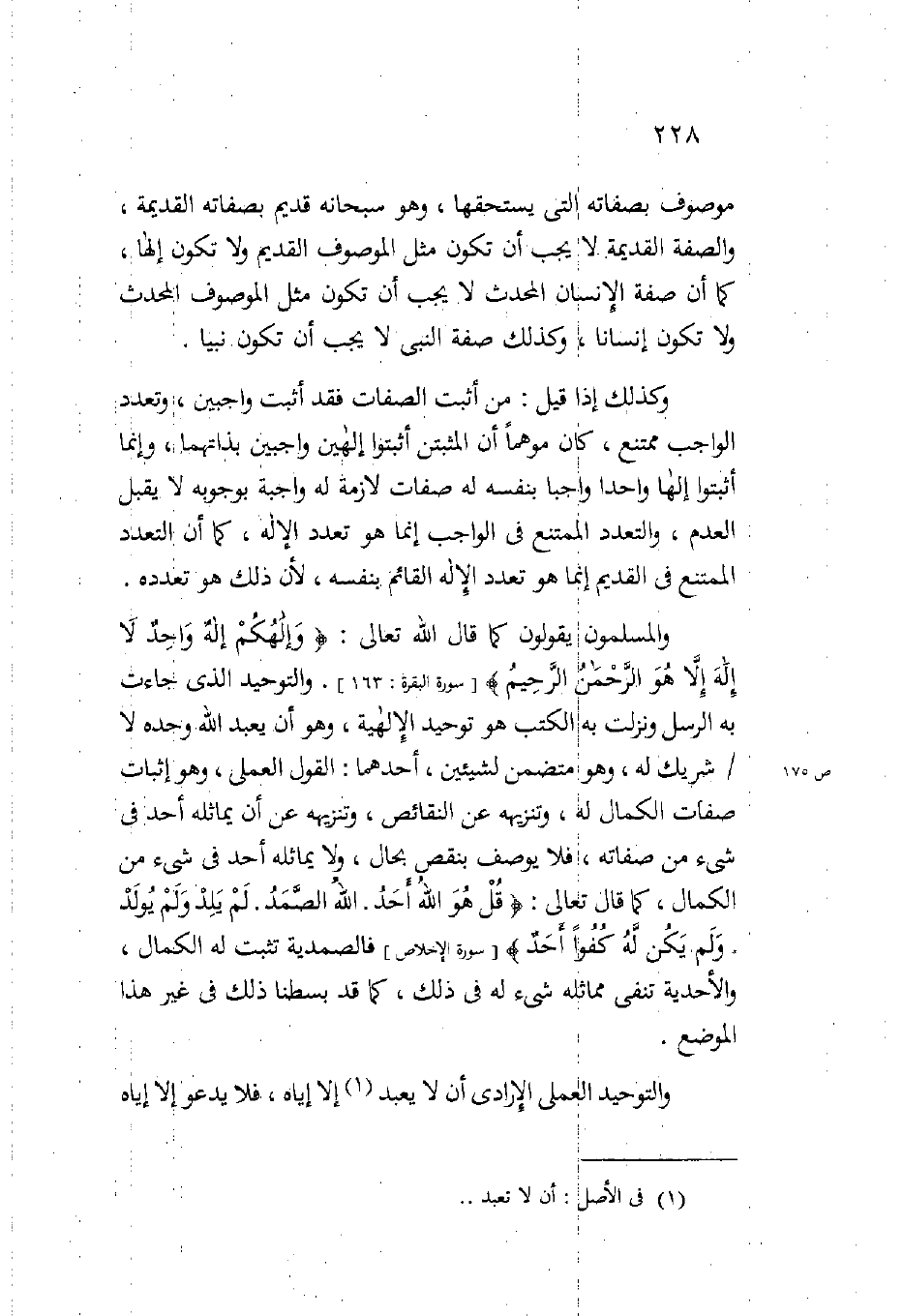 موصوف بصفاته التي يستحقها وهو سبحانه قديم بصفاته القديمة والصفة القديمة لا يجب أن تكون مثل الموصوف القديم ولا تكون إلها كما أن صفة الإنسان المحدث لا يجب أن تكون مثل الموصوف المحدث ولا تكون إنسانا وكذلك صفة النبي لا يجب أن تكون نبيا.