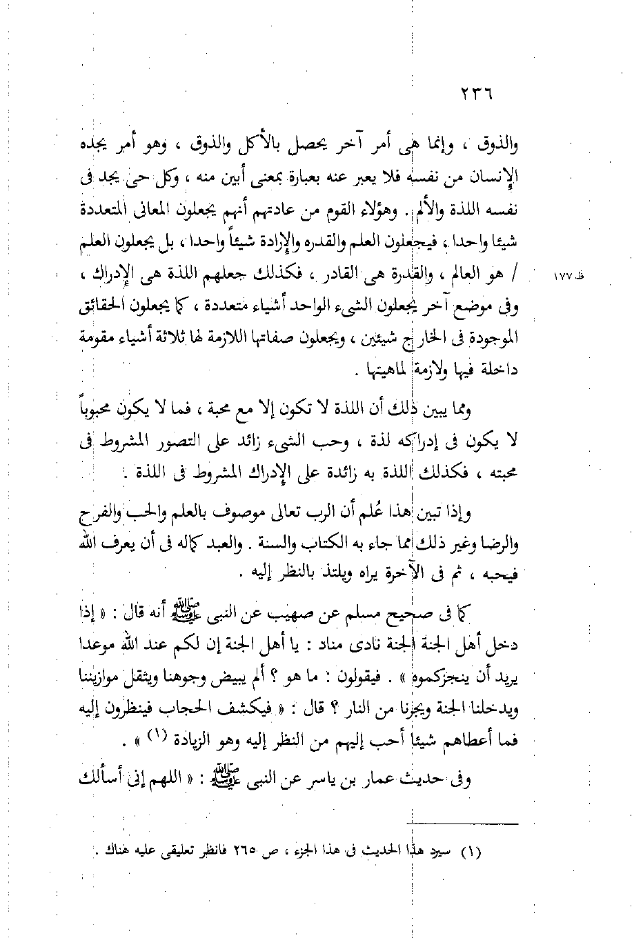 وإذا تبين هذا علم أن الرب تعالى موصوف بالعلم والحب والفرح والرضا وغير ذلك مما جاء به الكتاب والسنة والعبد كماله في أن يعرف الله فيحبه ثم في الآخرة يراه ويلتذ بالنظر إليه.