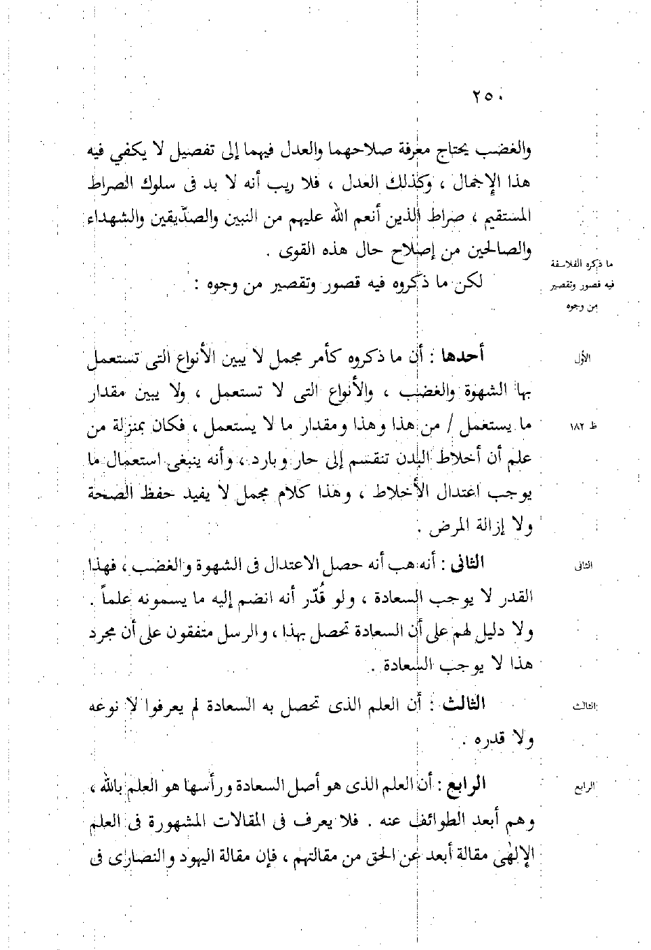 الثاني: أنه هب أنه حصل الاعتدال في الشهوة والغضب فهذا القدر لا يوجب السعادة ولو قدر أنه انضم إليه ما يسمونه علما ولا دليل لهم على أن السعادة تحصل بهذا والرسل متفقون على أن مجرد هذا لا يوجب السعادة.