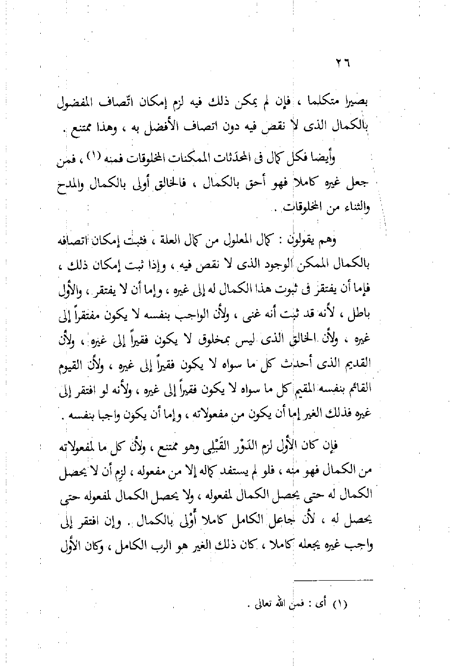 بصيرا متكلما فإن لم يمكن ذلك فيه لزم إمكان اتصاف المفضول بالكمال الذي لا نقص فيه دون اتصاف الأفضل به وهذا ممتنع.