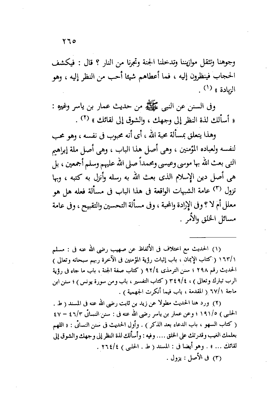 وجوهنا وتثقل موازيننا وتدخلنا الجنة وتجرنا من النار؟ قال: فيكشف الحجاب فينظرون إليه فما أعطاهم شيئا أحب من النظر إليه وهو الزيادة".