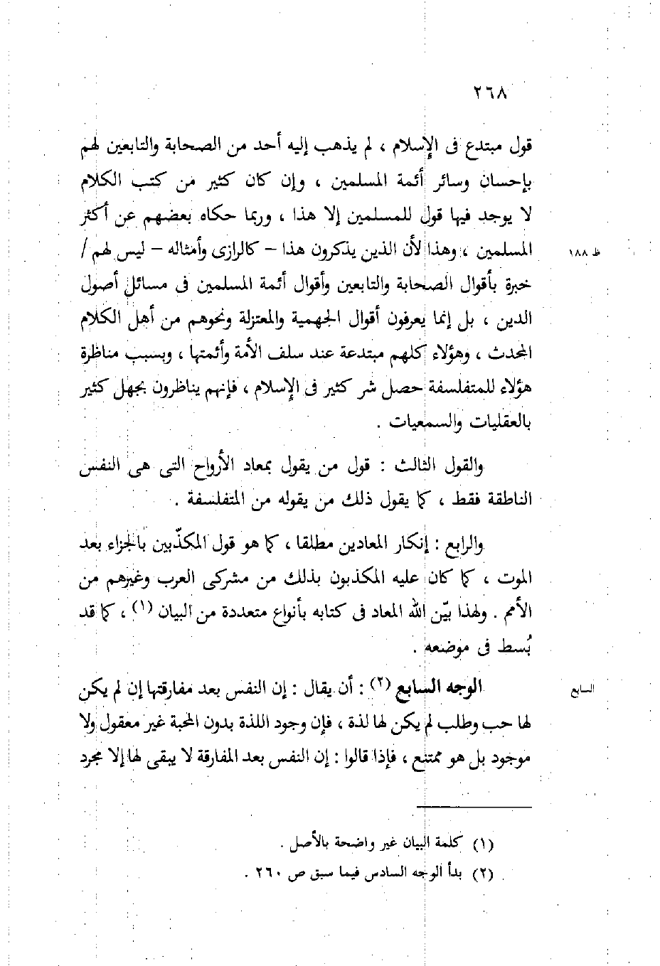 قول مبتدع في الإسلام لم يذهب إليه أحد من الصحابة والتابعين لهم بإحسان وسائر أئمة المسلمين وإن كان كثير من كتب الكلام لا يوجد فيها قول للمسلمين إلا هذا وربما حكاه بعضهم عن أكثر المسلمين وهذا لأن الذين يذكرون هذا كالرازي وأمثاله ليس لهم خبرة بأقوال الصحابة والتابعين وأقوال أئمة المسلمين في مسائل أصول الدين بل إنما يعرفون أقوال الجهمية والمعتزلة ونحوهم من أهل الكلام المحدث وهؤلاء كلهم مبتدعة عند سلف الأمة وأئمتها وبسبب مناظرة هؤلاء للمتفلسفة حصل شر كثير في الإسلام فإنهم يناظرون بجهل كثير بالعقليات والسمعيات.