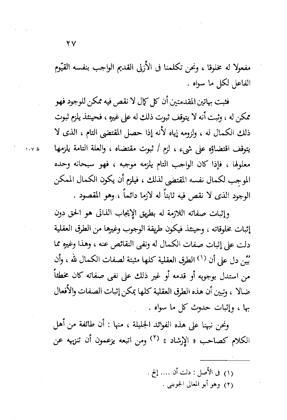 ونحن نبهنا على هذه الفوائد الجليلة منها أن طائفة من أهل الكلام كصاحب الإرشاد ومن اتبعه يزعمون أن تنزيهه عن