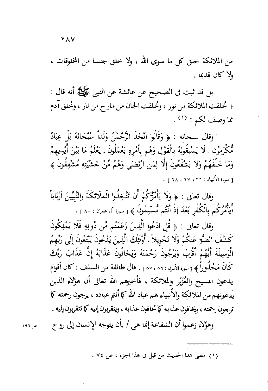 وقال تعالى: {وَلا يَأْمُرَكُمْ أَنْ تَتَّخِذُوا الْمَلائِكَةَ وَالنَّبِيِّينَ أَرْبَاباً أَيَأْمُرُكُمْ بِالْكُفْرِ بَعْدَ إِذْ أَنْتُمْ مُسْلِمُونَ} (سورة آل عمران 80) .