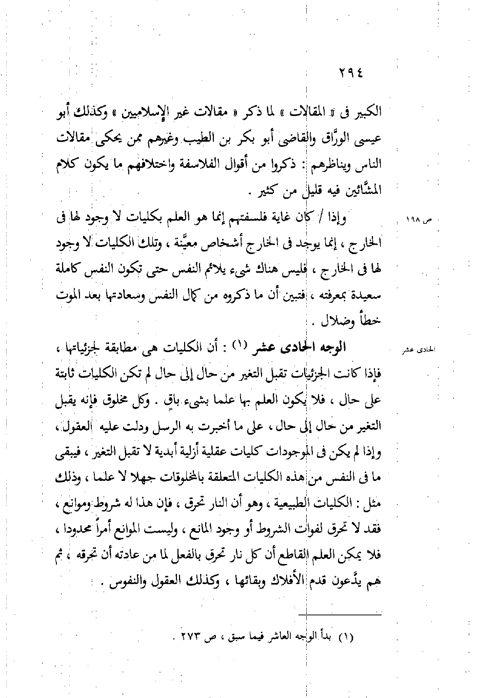 الكبير في المقالات لما ذكر مقالات غير الإسلاميين وكذلك أبو عيسى الوراق والقاضي أبو بكر بن الطيب وغيرهم ممن يحكي مقالات الناس ويناظرهم ذكروا من أقوال الفلاسفة اختلافهم ما يكون كلام المشائين فيه قليل من كثير.