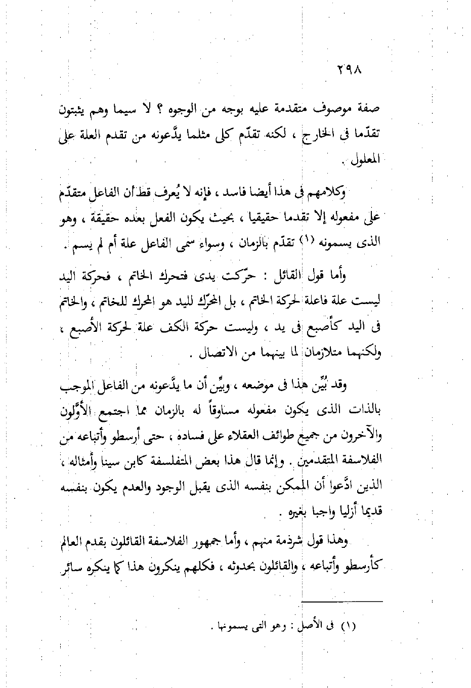 وقد بين هذا في موضعه وبين أن ما يدعونه من الفاعل الموجب بالذات الذي يكون مفعوله مساوقا له بالزمان مما اجتمع الأولون والآخرون من جميع طوائف العقلاء على فساده حتى أرسطو وأتباعه من الفلاسفة المتقدمين وإنما قال هذا بعض المتفلسفة كابن سينا وأمثاله الذين ادعوا أن الممكن بنفسه الذي يقبل الوجود والعدم يكون بنفسه قديما أزليا واجبا بغيره.