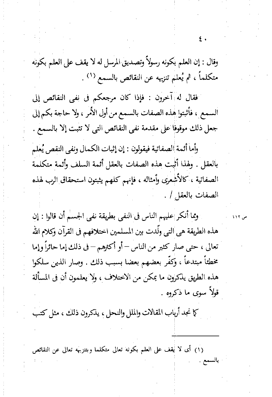 فقال له آخرون: فإذا كان مرجعكم في نفي النقائص إلى السمع فأثبتوا هذه الصفات بالسمع من أول الأمر ولا حاجة بكم إلى جعل ذلك موقوفا على مقدمة نفي النقائص التي لا تثبت إلا بالسمع.