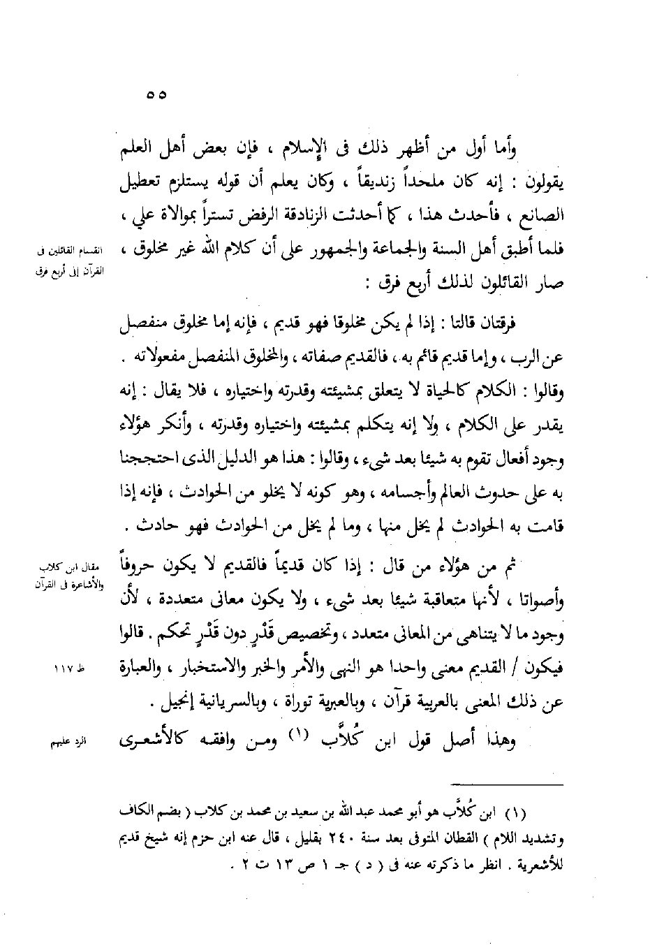 وهذا أصل قول ابن كلاب ومن وافقه كالأشعري