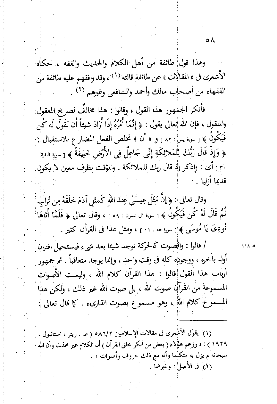 فأنكر الجمهور هذا القول وقالوا هذا مخالف لصريح المعقول والمنقول فإن الله تعالى يقول: {إِنَّمَا أَمْرُهُ إِذَا أَرَادَ شَيْئاً أَنْ يَقُولَ لَهُ كُنْ فَيَكُونُ} (سورة يس 82) وأن تخلص الفعل المضارع للاستقبال: {وَإِذْ قَالَ رَبُّكَ لِلْمَلائِكَةِ إِنِّي جَاعِلٌ فِي الأَرْضِ خَلِيفَةً} (سورة البقرة 30) أي واذكر إذ قال ربك للملائكة والمؤقت بظرف معين لا يكون قديما أزليا.