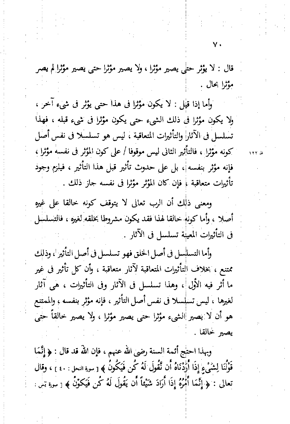 وبهذا احتج أئمة السنة رضي الله عنهم فإن الله قد قال: {إِنَّمَا قَوْلُنَا لِشَيْءٍ إِذَا أَرَدْنَاهُ أَنْ نَقُولَ لَهُ كُنْ فَيَكُونُ} (سورة النحل 40) وقال تعالى: {إِنَّمَا أَمْرُهُ إِذَا أَرَادَ شَيْئاً أَنْ يَقُولَ لَهُ كُنْ فَيَكُونُ} (سورة يس 82)