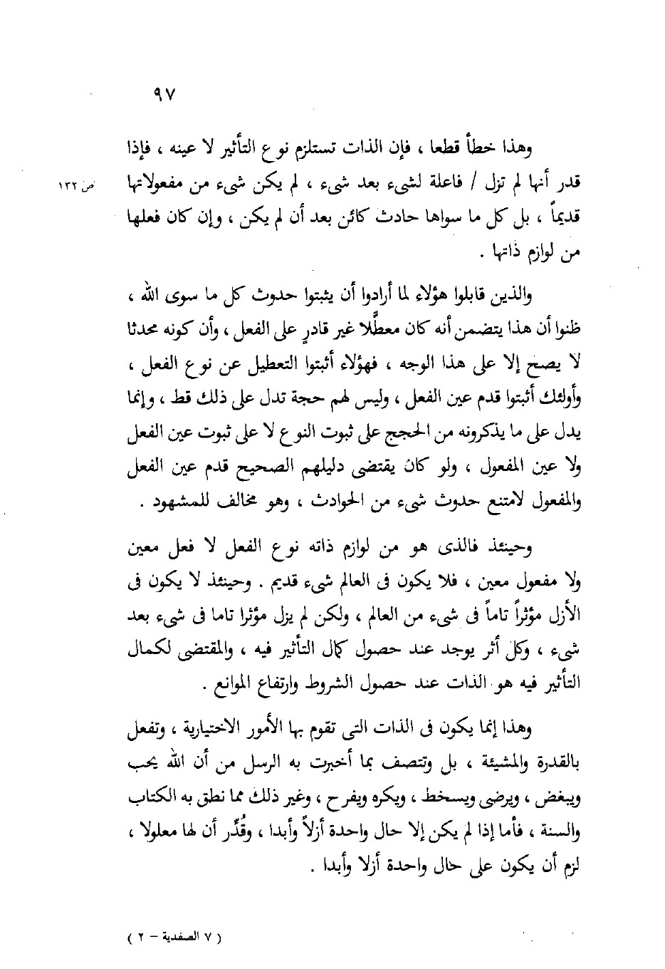 وهذا إنما يكون في الذات التي تقوم بها الأمور الاختيارية وتفعل بالقدرة والمشيئة بل وتتصف بما أخبرت به الرسل من أن الله يحب ويبغض ويرضى ويسخط ويكره ويفرح وغير ذلك مما نطق به الكتاب والسنة فأما إذا لم يكن إلا حال واحدة أزلا وأبدا وقدر أن لها معلولا لزم أن يكون على حال واحدة أزلا وأبدا.