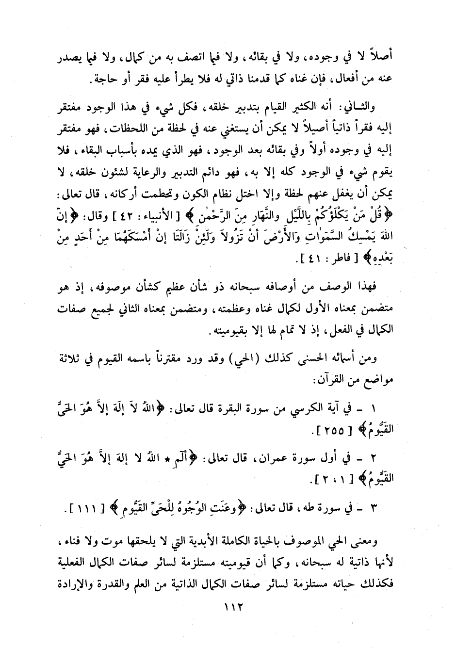 و الثاني: أنه الكثير القيام بتدبير خلقه، فكل شي ء في هذا الوجود مفتقر إليه فقرا ذاتيا أصيلا لا يمكن أن يستغني عنه في لحظة من اللحظات، فهو مفتقر إليه في وجوده أولا وفي بقائه بعد الوجود، فهو الذي يمده بأسباب البقاء، فلا يقوم شي ء في الوجود كله إلا به، فهو دائم التدبير والرعاية لشئون خلقه، لا يمكن أن يغفل عنهم لحظة وإلا اختل نظام الكون وتحطمت أركانه، قال تعالى: