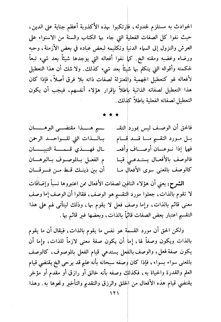 فالوصف بالأفعال يستدعي قيا ... م الفعل بالموصوف بالبرهان