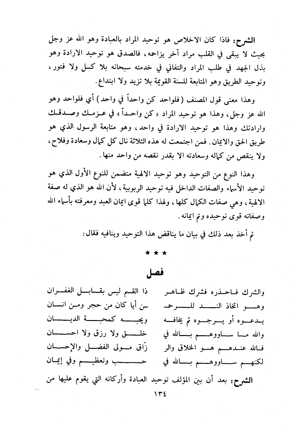بعد أن بين المؤلف توحيد العبادة وأركانه التي يقوم عليها من