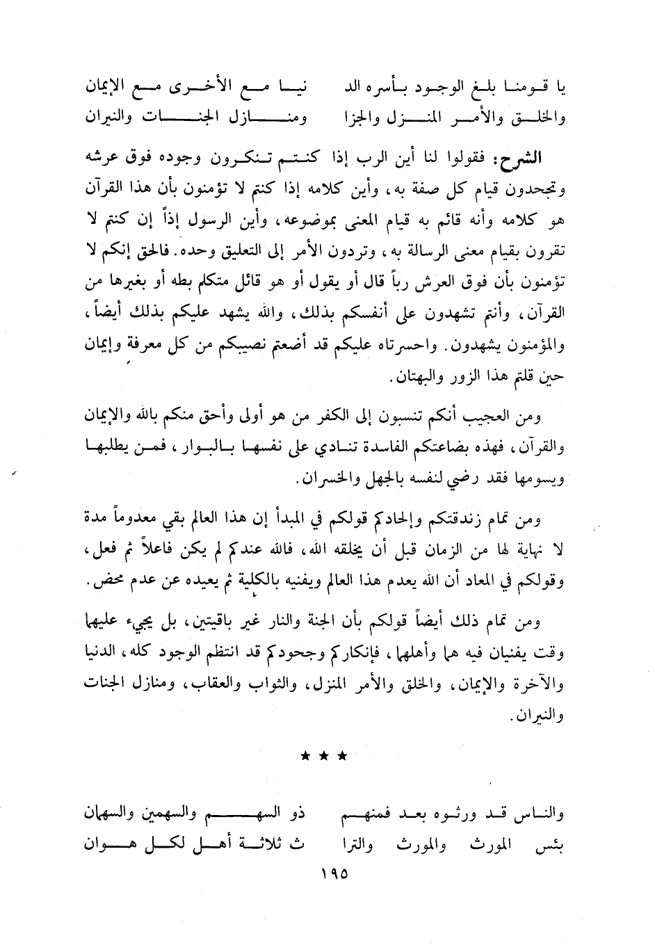 والخلق والأمر المنزل والجزا ... ومنازل الجنات والنيران