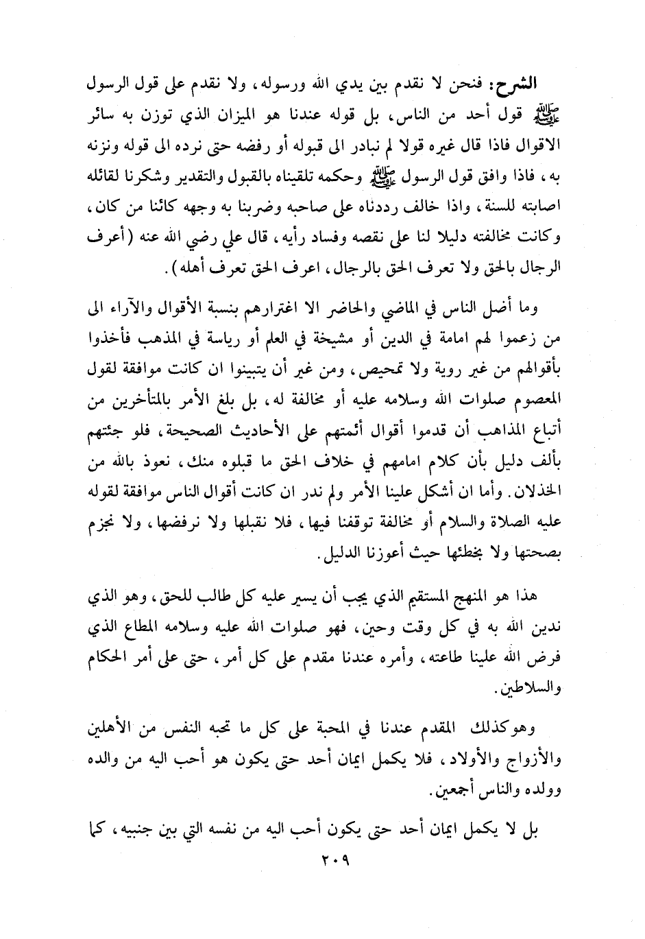 هذا هو المنهج المستقيم الذي يجب أن يسير عليه كل طالب للحق، وهو الذي ندين اللّه به في كل وقت وحين، فهو صلوات اللّه عليه وسلامه المطاع الذي فرض اللّه علينا طاعته، وأمره عندنا مقدم على كل أمر، حتى على أمر الحكام والسلاطين.