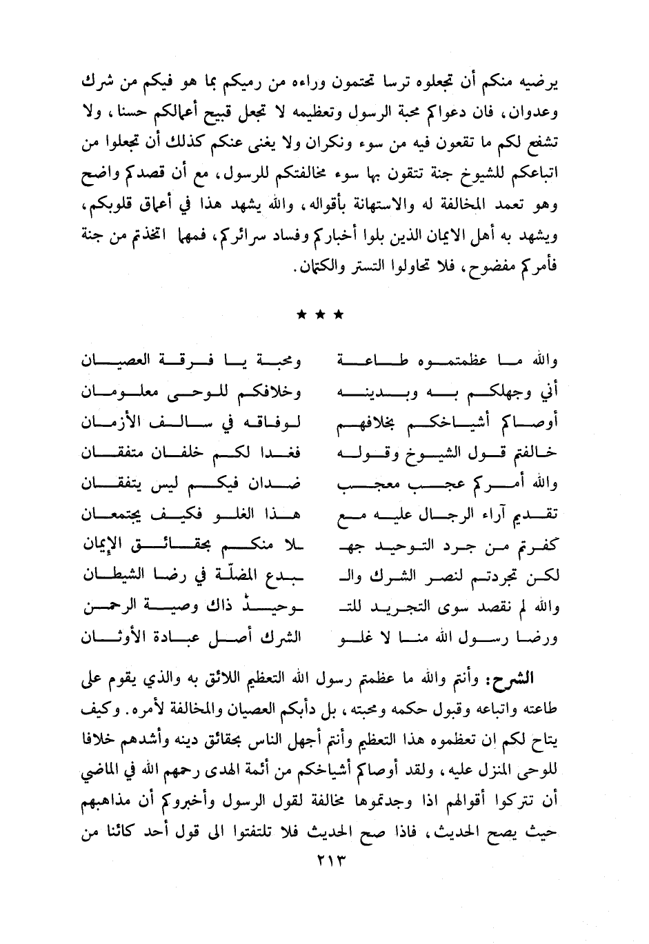 وأنتم واللّه ما عظمتم رسول اللّه التعظيم اللائق به والذي يقوم على طاعته واتباعه وقبول حكمه ومحبته، بل دأبكم العصيان والمخالفة لأمره. وكيف يتاح لكم ان تعظموه هذا التعظيم وأنتم أجهل الناس بحقائق دينه وأشدهم خلافا للوحى المنزل عليه، ولقد أوصاكم أشياخكم من أئمة الهدى رحمهم اللّه في الماضي أن تتركوا أقوالهم اذا وجدتموها مخالفة لقول الرسول وأخبروكم أن مذاهبهم حيث يصح الحديث، فاذا صح الحديث فلا تلتفتوا الى قول أحد كائنا من