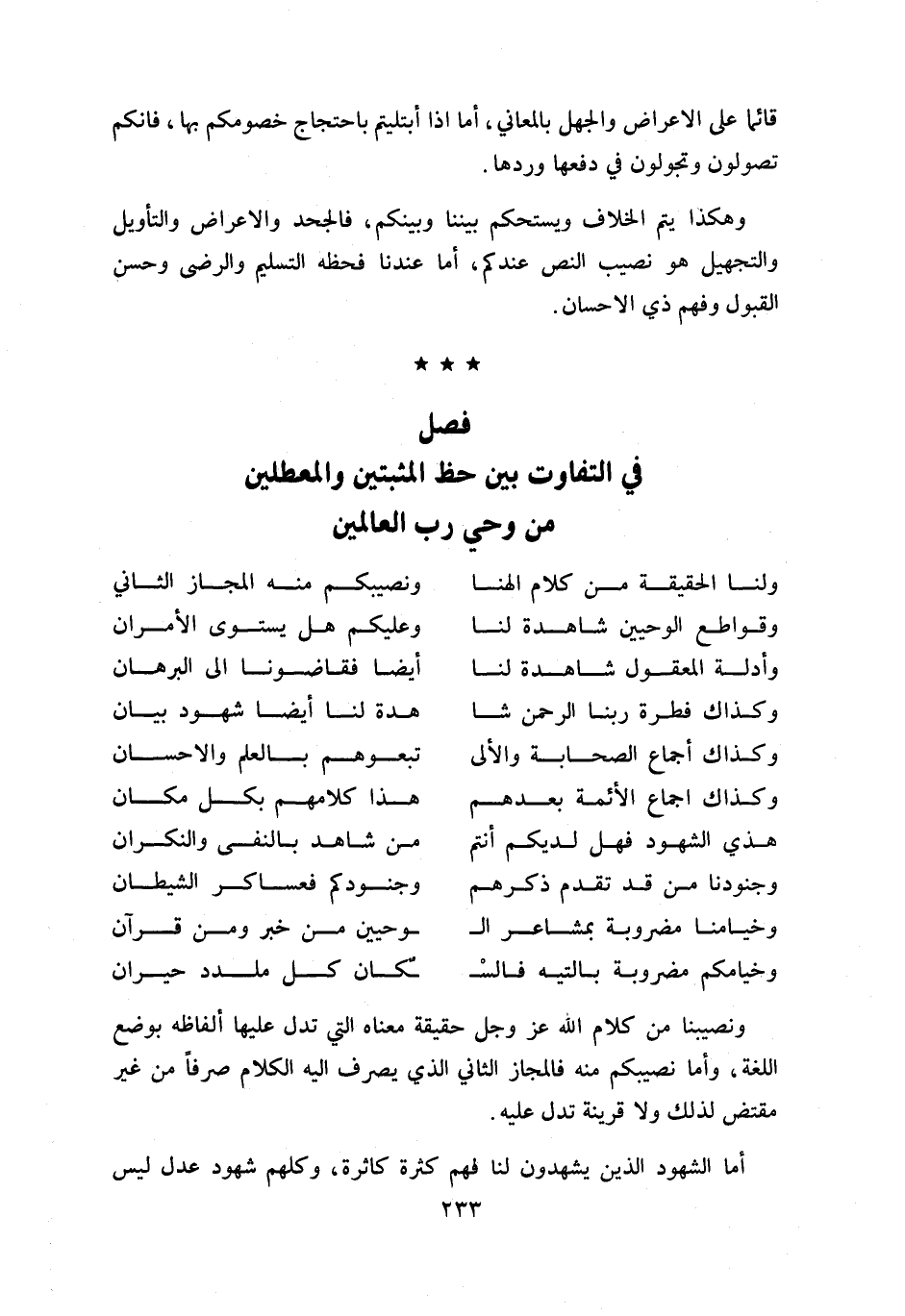 فصل في التفاوت بين حظ المثبتين والمعطلين من وحي رب العالمين