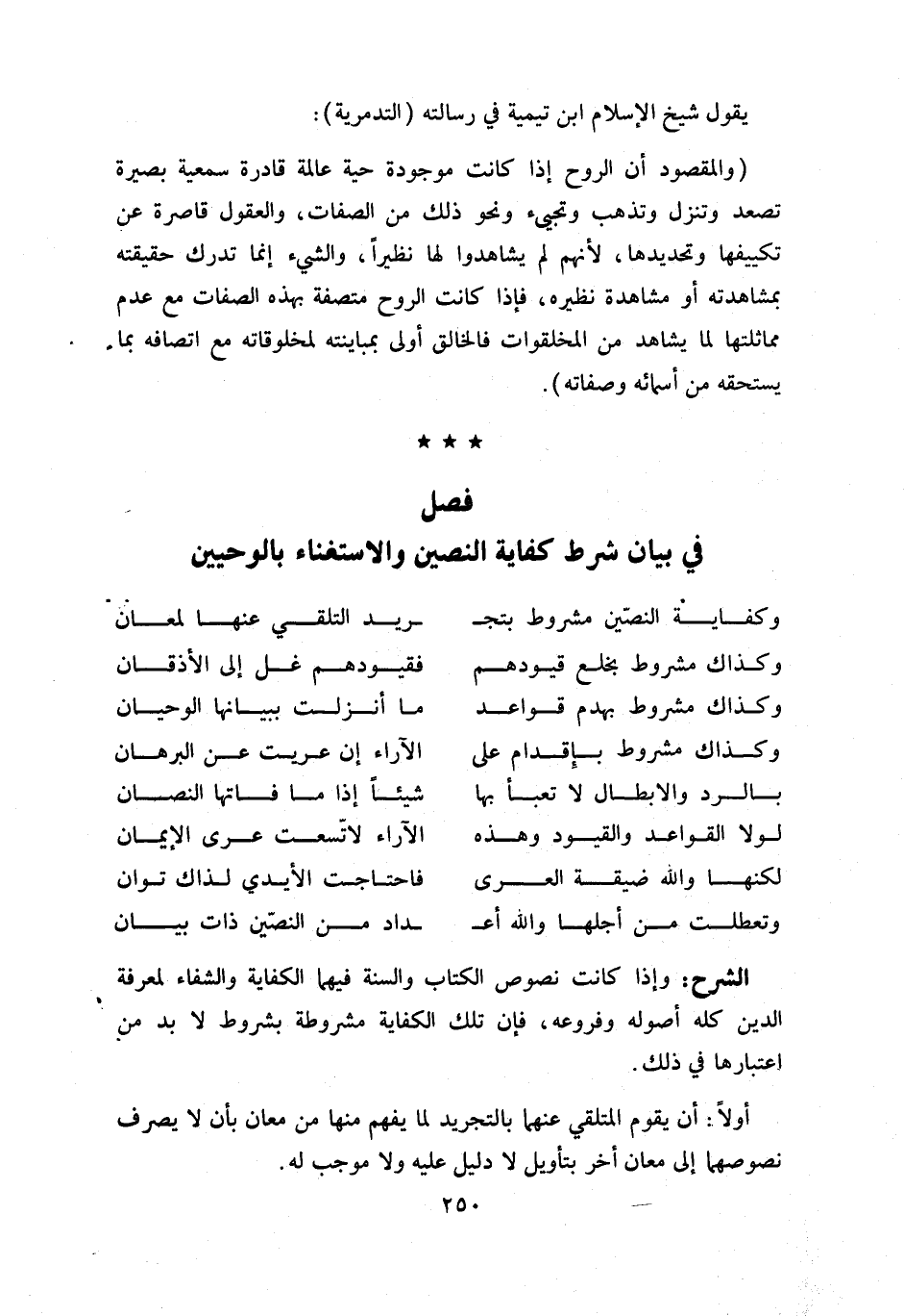 وإذا كانت نصوص الكتاب والسنة فيهما الكفاية والشفاء لمعرفة الدين كله أصوله وفروعه، فإن تلك الكفاية مشروطة بشروط لا بد من اعتبارها في ذلك.