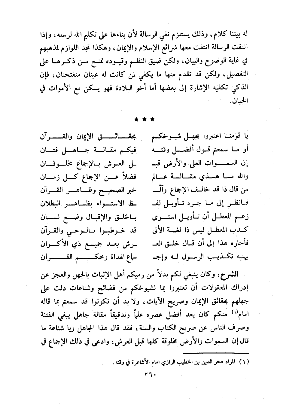 (1) المراد فخر الدين بن الخطيب الرازي امام الأشاعرة في وقته.