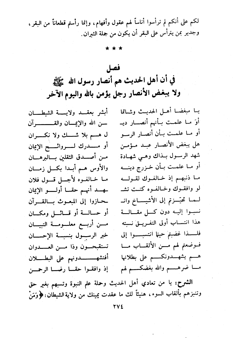 فصل في أن أهل الحديث هم أنصار رسول اللّه صلّى اللّه عليه وسلّم ولا يبغض الأنصار رجل يؤمن باللّه واليوم الآخر