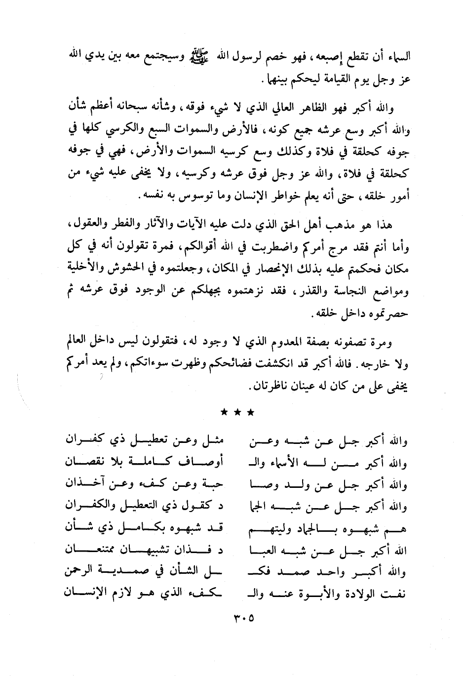 واللّه أكبر جل عن شبه الجما ... د كقول ذي التعطيل والكفران