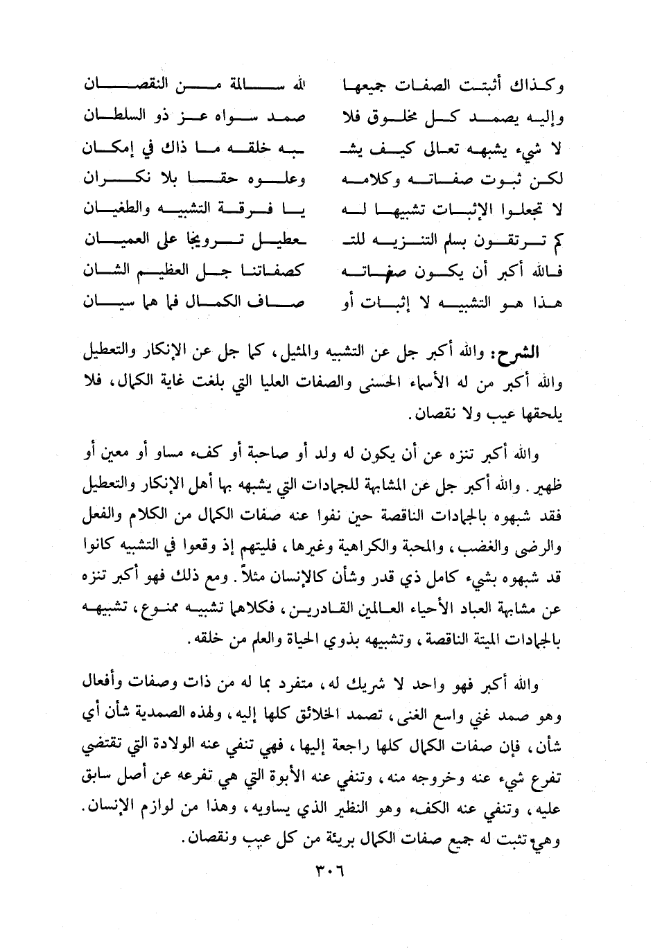 فاللّه أكبر أن يكون صفاته ... كصفاتنا جل العظيم الشأن