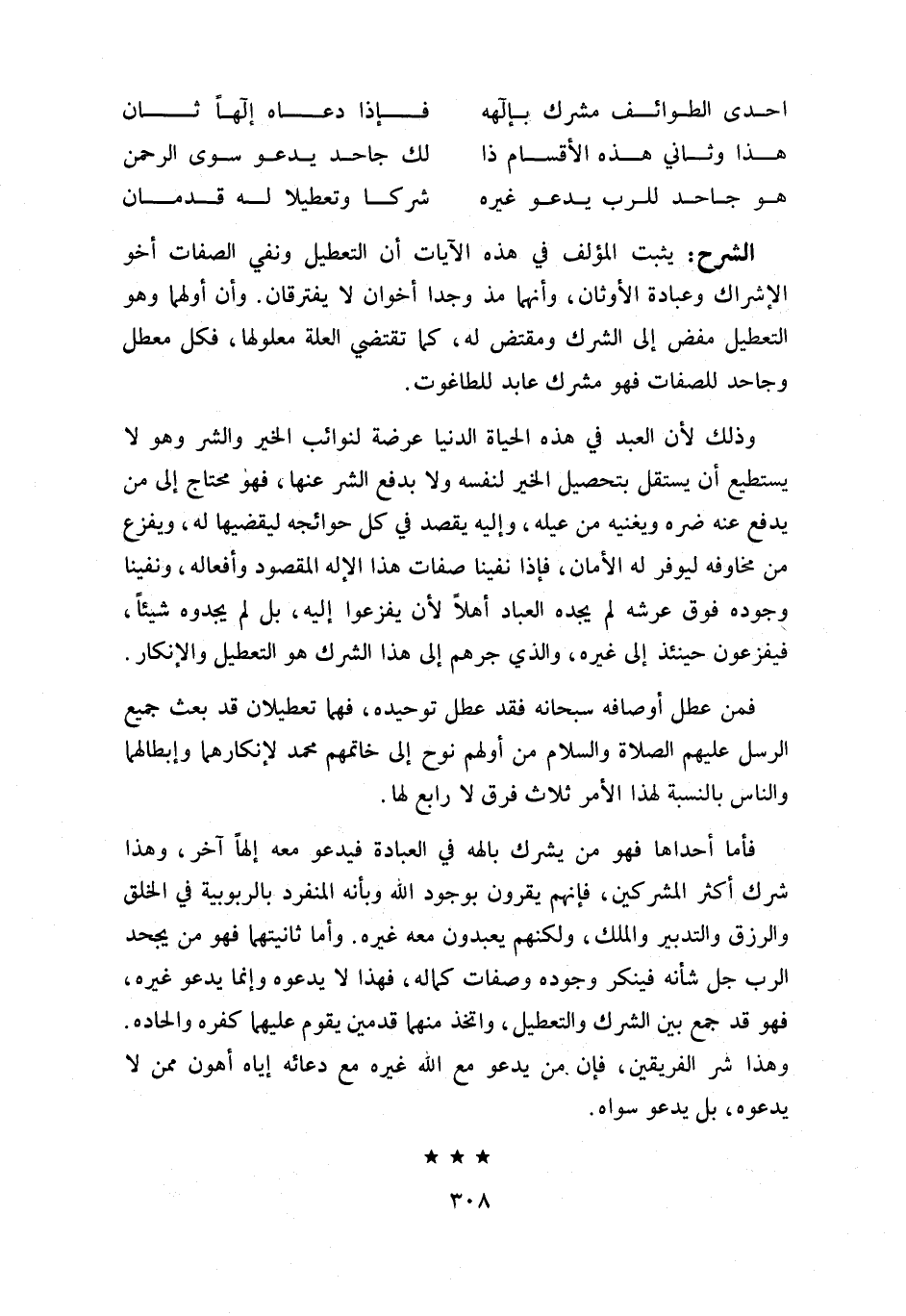يثبت المؤلف في هذه الآيات أن التعطيل ونفي الصفات أخو الإشراك وعبادة الأوثان، وأنهما مذ وجدا أخوان لا يفترقان. وأن أولهما وهو التعطيل مفض إلى الشرك ومقتض له، كما تقتضي العلة معلولها، فكل معطل وجاحد للصفات فهو مشرك عابد للطاغوت.